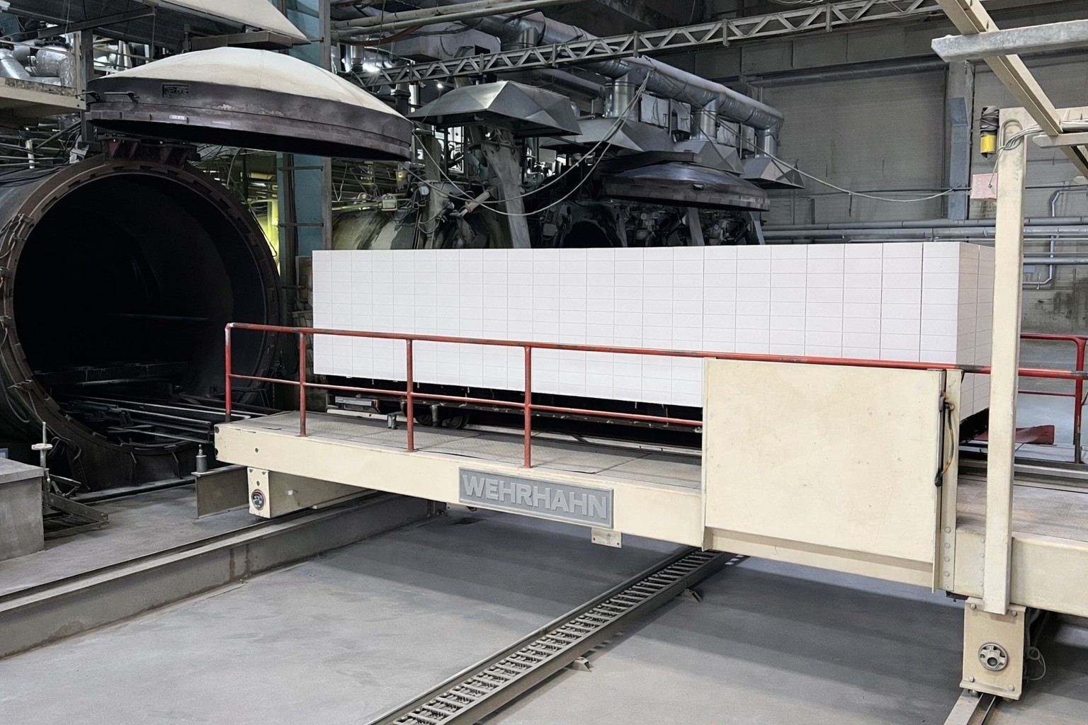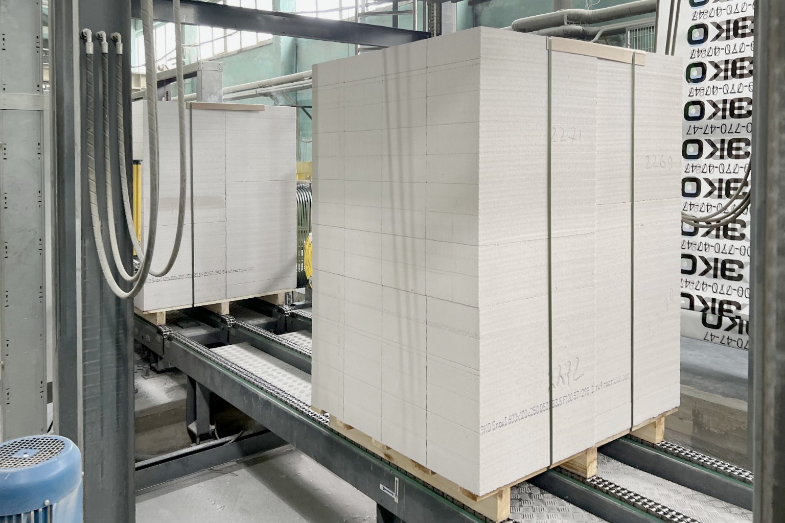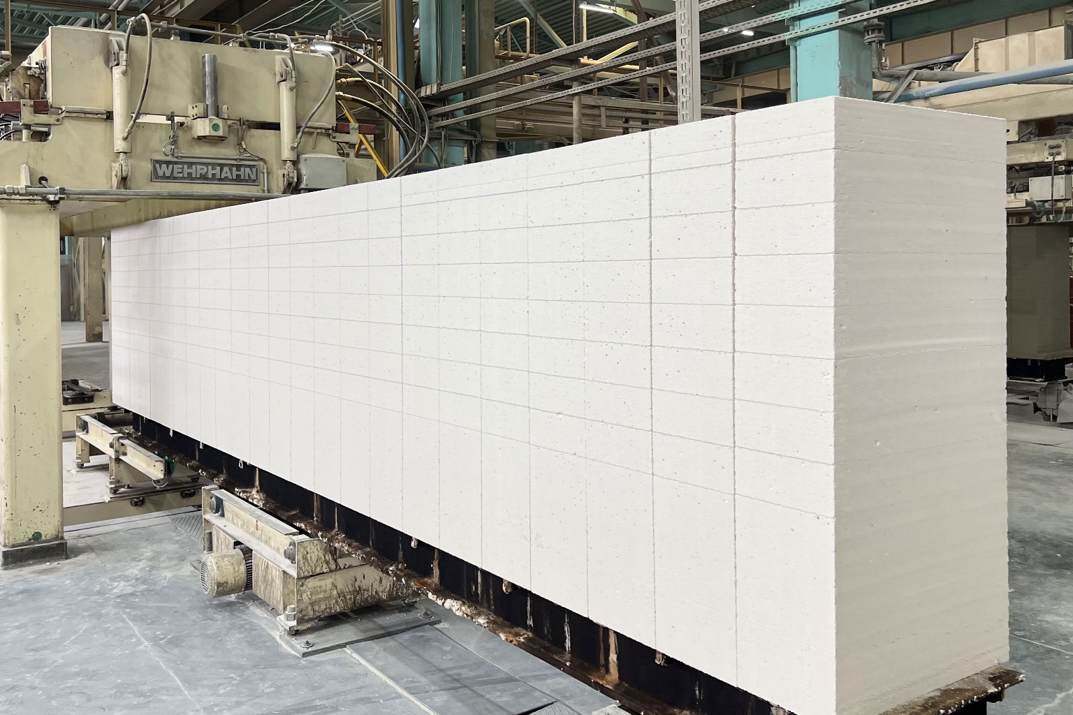 Представленная в продаже газобетонная продукция выпускается на автоматической линии Wehrhahn, разработанной на основе передовых европейских технологий. Благодаря этому обеспечиваются стабильные показатели качества и точность геометрических размеров газобетонного блока. Производственный процесс осуществляется в несколько этапов: помол песка и гипсового камня, дозирование и смешение компонентов сырья, резка ячеистобетонного массива, автоклавирование под давлением 12,5 атм. при температуре +196 °C, сортировка готовых газоблоков по типоразмерам и плотности, их упаковка.